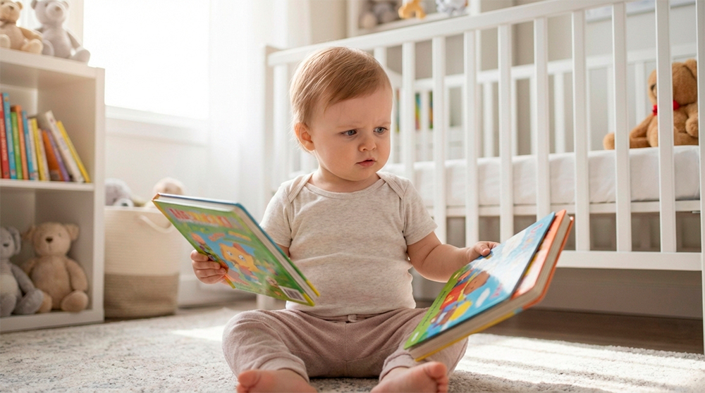 Идеальный выбор — книжки-игрушки, которые можно грызть, трогать, переворачивать. Они не столько «читаются», сколько становятся частью сенсорной среды. Примеры: «Книжка-малышка» с животными, «Тактильные истории» с пушистыми или шершавыми поверхностями.