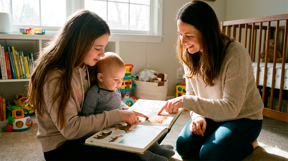 Хорошо работают форматы «один предмет — одна картинка» и мини-истории с простым сюжетом («Мишка потерял шапку»). Важно, чтобы взрослый читал вслух с интонацией, жестами, вовлекая ребёнка в процесс.