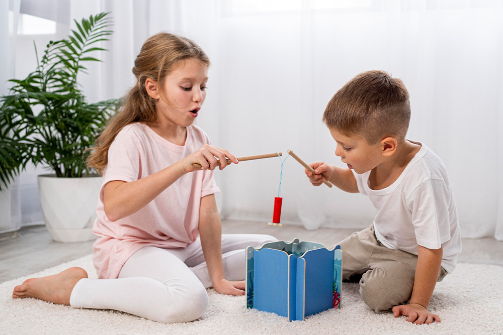 Наборы, которые подразумевают участие нескольких детей одновременно, например, конструкторы с большим количеством деталей, настольные игры для малышей, наборы для ролевых игр (кухни, врачебные наборы, фермы). Такие игрушки стимулируют необходимость делиться и играть вместе.