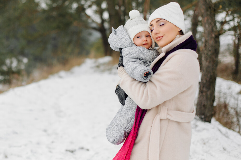 Младенец мало двигается, поэтому важен комфорт и защита от холода. В коляске дополнительно используйте теплый конверт или одеяло.