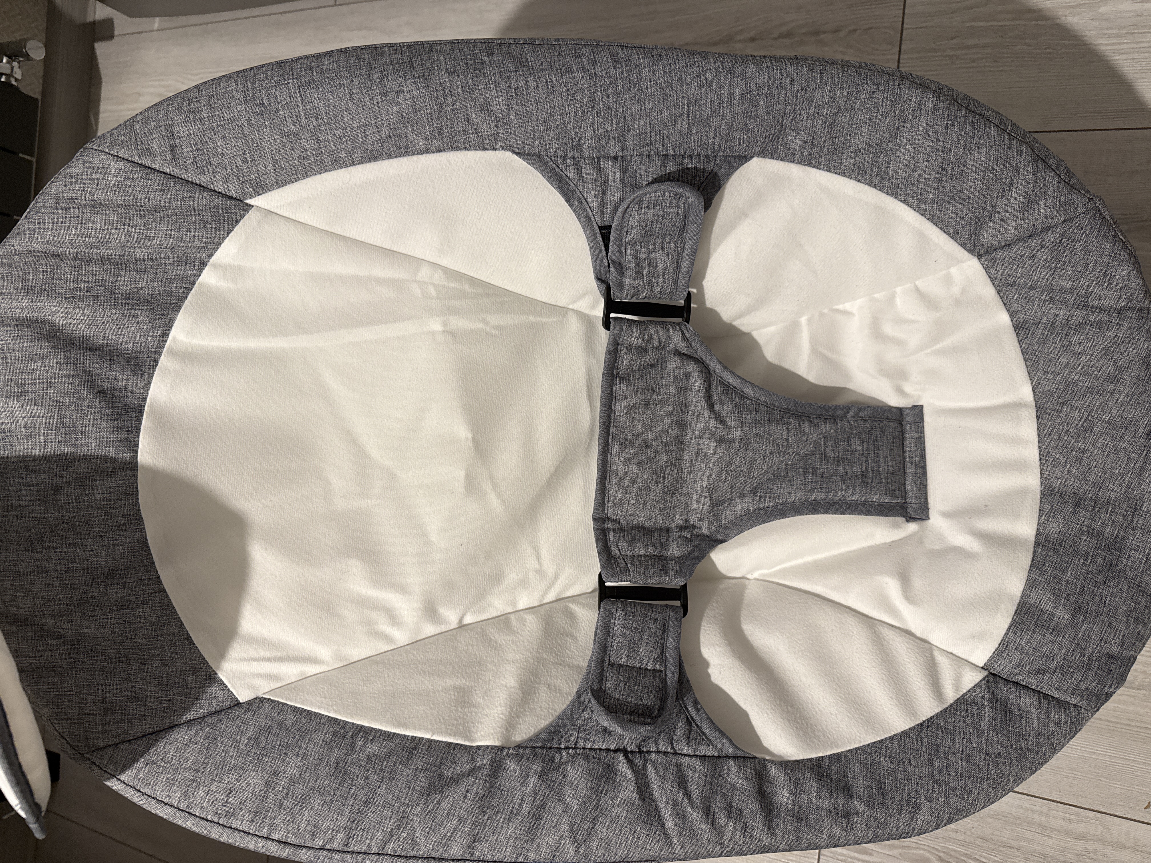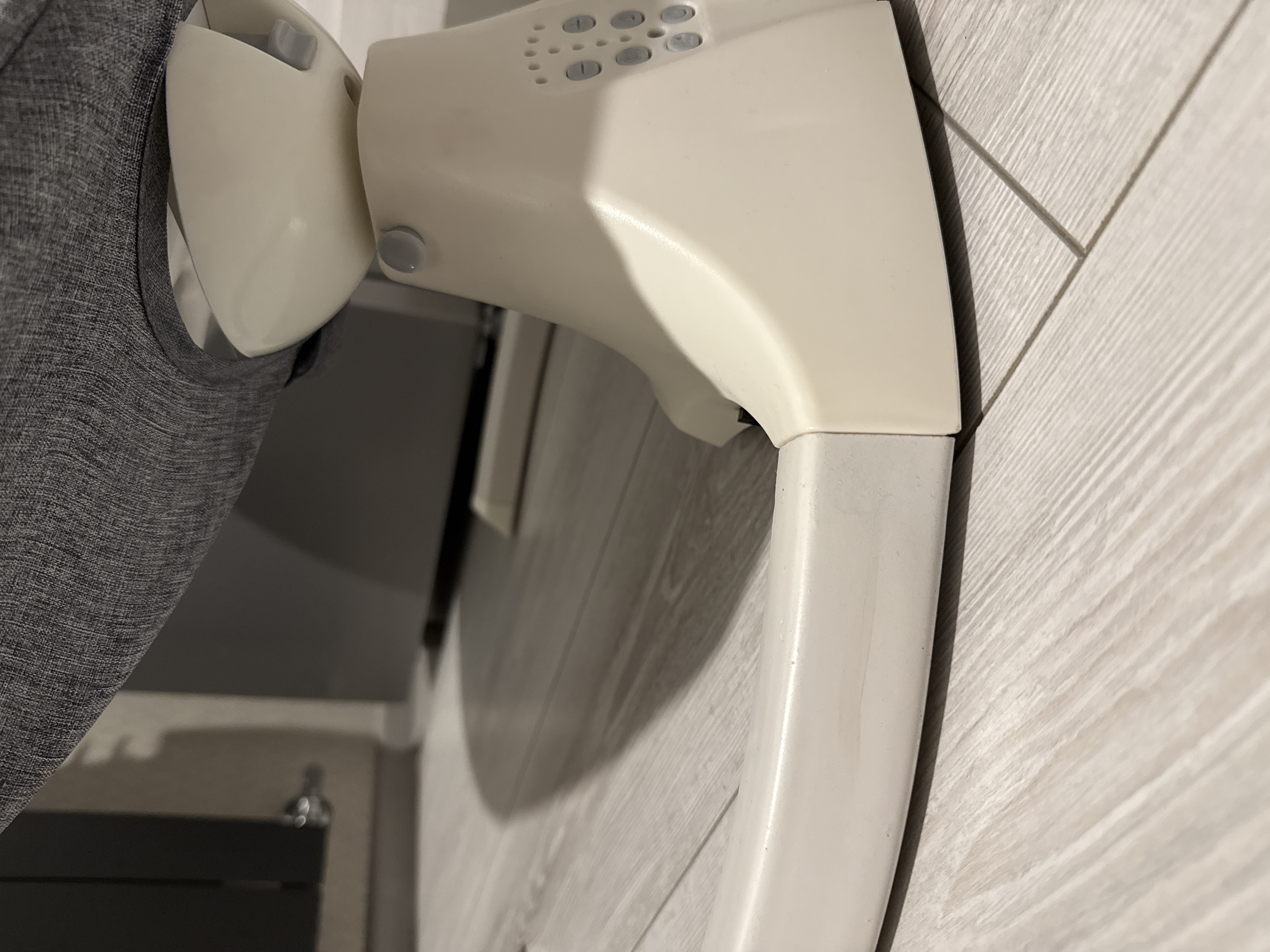 Один сплошной брак. Весь в коцках, Сшит криво-косо, ткань посередине в жизни белее,чем по бокам,выглядит дёшево. Скорость покачивания практически одинаково-медленная ,что на 1,что на 5, с первого применения -скрипит