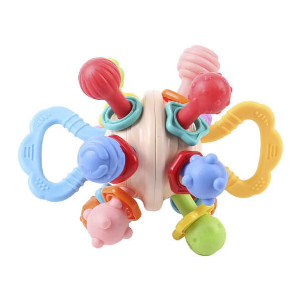 Игрушка изготовлена из безопасного пластика и подходит для самых маленьких. Мягкие поверхности и разнообразные на ощупь детали способствуют развитию тактильных навыков. Погремушка издает приятные звуки при движении, что помогает в аудиторном развитии.