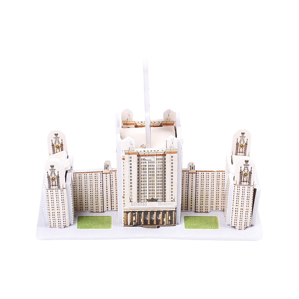 Жемчужина советской архитектуры, высотное здание МГУ, вошла в коллекцию миниатюрных объемных моделей для складывания из прессованного пенокартона. Размер готовой копии 9х4х7,5см. Игрушка относится к развивающим пазлам низкой сложности, модель подойдет для игр или коллекционирования. Детали пазла прорезаны и сразу готовы к складыванию, справиться со сборкой смогут дети старше 5 лет. Игрушка продается в коробке, на которой напечатаны увлекательные факты об историческом объекте и инструкция по сборке.