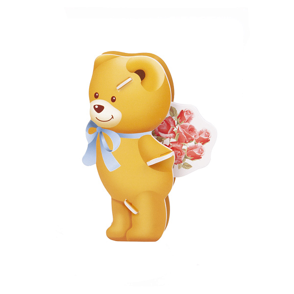 Проявить свои конструкторские способности дети старше 5 лет смогут при сборке объемной фигурки медвежонка с букетом цветов. В комплекте есть детали, необходимые для работы: подробная и четкая инструкция, а также картонные листы с деталями будущего пазла.