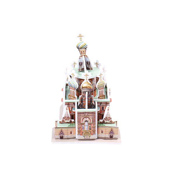 Серия оригинальных архитектурных пазлов пополнилась миниатюрной объемной моделью русского православного храма. Пазл состоит из деталей с печатным изображением, прорезанных на плотном пенокартоне. Модель имеет размеры 8,9х9,1х6,2см, в ней сохранены все пропорции оригинала. Пазл подходит для игр детей старше 5 лет или коллекционирования. Конструктор относится ко 2 уровню сложности и продается в красочной коробке, на которой напечатана инструкция по сборке и увлекательные факты из истории собора. Игрушка позволит ребенку познакомиться с основами моделирования.