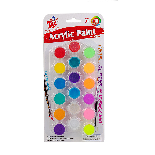 Акриловые краски «The best crafts» открывают простор для полета фантазии и воплощения на бумаге желанной и красочной задумки. Такой набор из 18 цветов подойдет детям старше 3 лет, которые уже научились держать кисточку и рисовать фигуры на бумаге.То, от чего ребенок придет в восторг — это состав. Всего в комплекте три планшетки по 6 баночек в каждой - жемчужной, глиттерной и неоновой. Их можно смешивать между собой, создавать новые оттенки и плотность, рисовать светящиеся рисунки, украшать блестящим покрытием и создавать иллюстрации не только в альбоме. С их помощью можно освоить технику декупажа, рисунка по дереву или стеклу — высокая пигментация гарантирует яркость и насыщенность цвета надолго. В процессе использования ребенок разовьет моторику рук и фантазию.