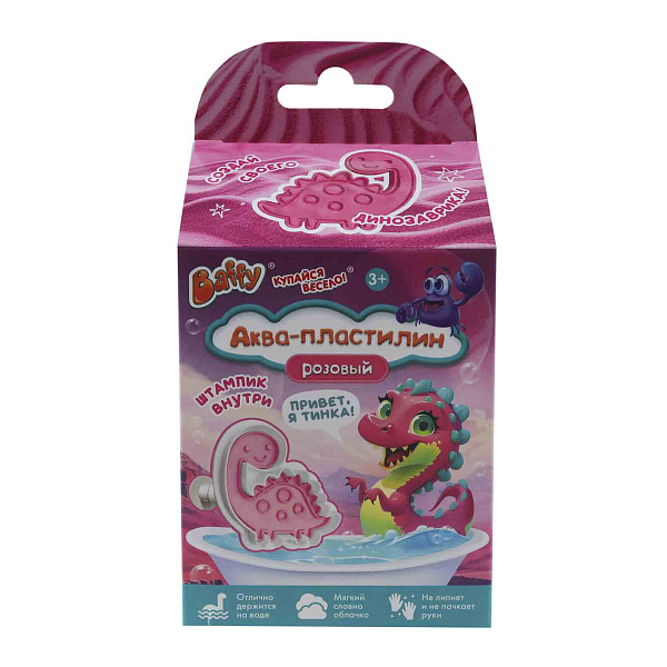 Розовый аква-пластилин Baffy «Диномир» — это мягкая, веселая пластичная масса, которая превращает обычное купание в настоящий творческий остров приключений. В комплекте — забавный штампик в форме динозавра, с которым можно лепить фигурки прямо в воде и наблюдать, как они плавают, не разваливаясь и не липнув к рукам.