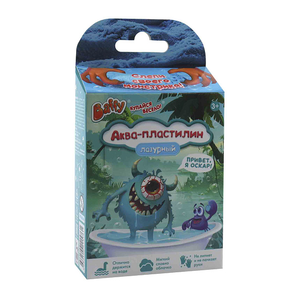 Аква-пластилин Baffy «Монстровселенная» лазурный— это мягкая, веселая масса, которая превращает простое купание в море творческих приключений. В комплекте — забавный глаз-игрушка, с помощью которого можно создать своего уникального водяного монстра прямо в воде и наблюдать, как он плавает, не разваливаясь и не липнув к рукам.