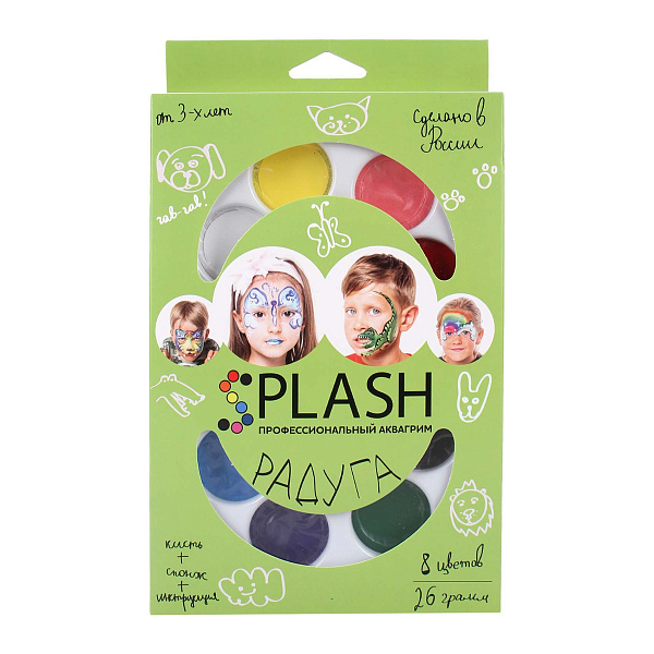 Аквагрим Splash «Радуга» представляет собой палитру с восемью яркими цветами. В комплект входят кисть, спонж и инструкция, что значительно упрощает процесс использования. Разнообразие цветов позволяет детям создавать различные образы.