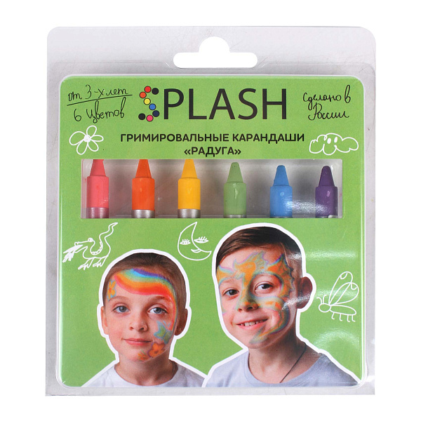 Аквагрим SPLASH в карандаше Радуга восковые 6цветов