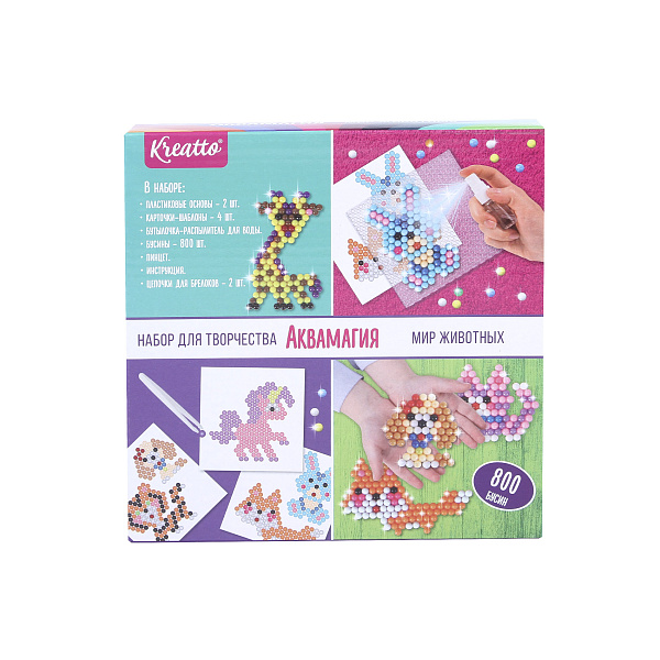 Набор для творчества Kreatto Аквамагия Мир животных 800бусин