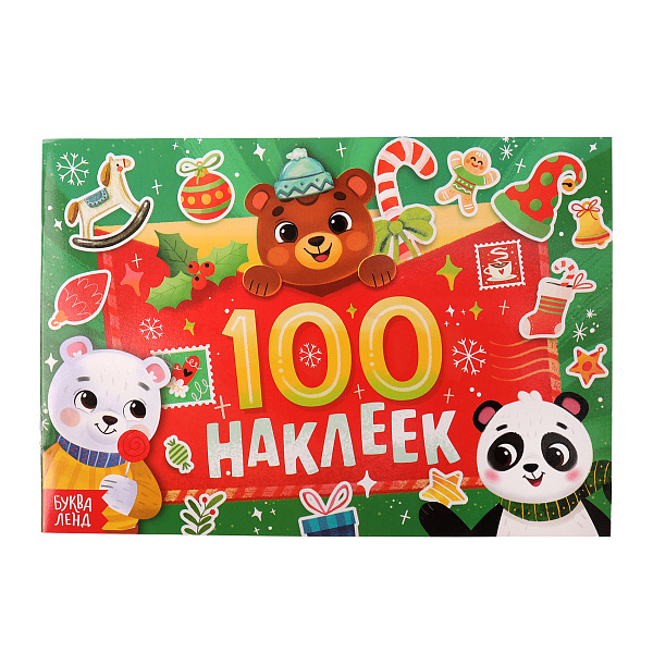 Альбом «100 наклеек» предлагает увлекательное путешествие в мир творчества и фантазии. На обложке – любимые детские персонажи, окруженные снежинками и подарками. Дизайн создает атмосферу веселья и зимнего настроения.