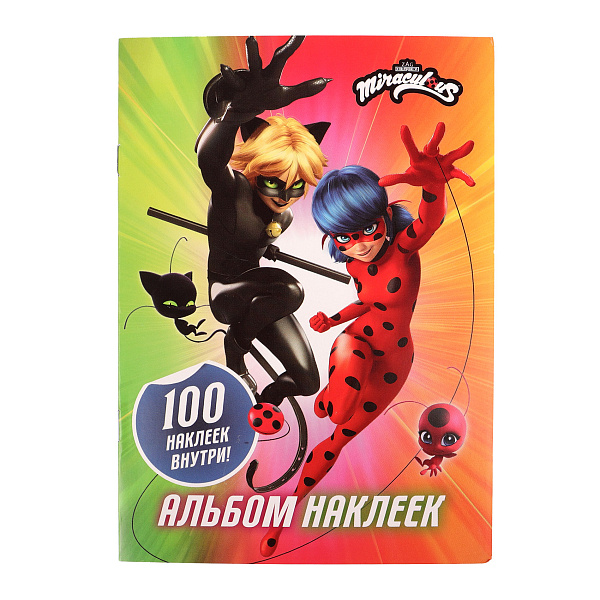 Внутри альбома находятся 100 красочных наклеек различных форм и размеров. Наклейки изображают Леди Баг, Супер-Кота, их друзей супергероев в различных сценах, что позволяет создавать собственные истории и украшать ими любые предметы — тетради, дневники, пеналы или даже стены в комнате. Наклейки легко снимаются с поверхности, не оставляя следов. Они помогают развивать у детей мелкую моторику, воображение и креативные способности.