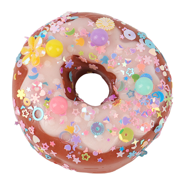 Антистресс-лизун «Пончик» с блестками — это яркая игрушка для снятия стресса и развития мелкой моторики. Лизун выполнен в форме аппетитного пончика, покрытого глазурью и украшенного разноцветными блестками и фигурками в виде звезд, цветочков и кружков. Это делает его привлекательным для детей и развивает их фантазию.