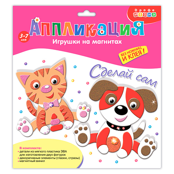 Аппликация Сделай сам игрушки на магнитах Котенок и щенок