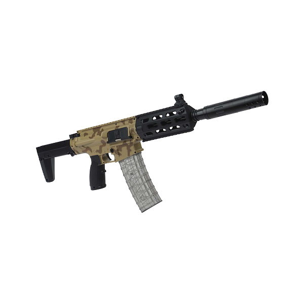 Автомат с мягкими пулями и вылетающими гильзами добавит в игры на военную тематику еще больше драйва и новых идей. Корпус из прочного пластика удобно лежит в руках, спусковой крючок легко нажимается даже детскими пальцами. Удлиненный глушитель эффектно смотрится на корпусе автомата, а автоматический выброс гильзы сделает игру более реалистичной.