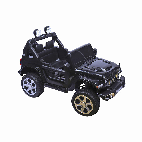 Стильный черный джип станет мечтой каждого маленького автомобилиста. Ребенок почувствует себя крутым водителем за рулем такого мощного авто. Прорезиненные колеса хорошо сцепляются с поверхностью и устойчиво удерживают ребенка во время поездки. Пластиковое сиденье со спинкой обеспечит комфорт и удобство юному гонщику. Панель управления спереди и зеркала позволят ребенку всегда следить за дорогой и скоростью джипа. Завершают образ брутального джипа фары спереди и сзади автомобиля. Время зарядки аккумулятора составляет от 8–12 часов.