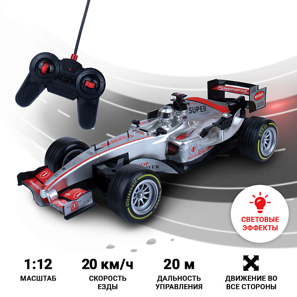 Пульт радиоуправления с большой зоной покрытия, механизм движения и сменяемые покрышки позволяют развивать болиду скорость до нескольких километров в час. А ребенку – чувствовать себя за рулем – победителем знаменитой Формулы!