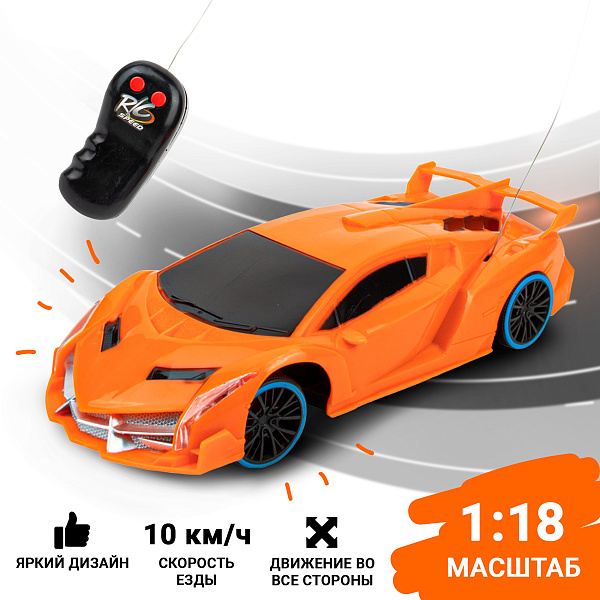 Машинка на радиоуправлении – мечта мальчишек и даже взрослых мужчин, которым в детстве не удалось позабавиться с этой чудесной игрушкой. Данная машинка представляет собой уменьшенную в восемнадцать раз копию высокоскоростного заниженного автомобиля. Деталировка игрушки поражает своей точностью и аккуратностью. Яркий оранжевый цвет привлекает внимание с первых секунд. Машинка обладает маневренностью и устойчивостью, легко разгоняется и мгновенно откликается на команды с пульта управления. Пульт при этом простой и понятный – всего несколько кнопок. С такой игрушкой дети разовьют не только моторику рук, но и скорость реакции, чтобы побеждать в скоростных гонках. Рекомендовано для детей старше 3 лет.