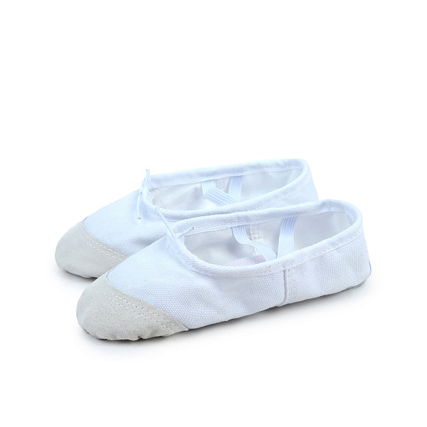 Балетки белые для танцев и занятий в школе, выполненные из прочного текстиля с мягкой носочной частью из натуральной кожи. Модель имеет эластичную резинку на заднике и шнурок для регулировки посадки, что обеспечивает комфорт и надежную фиксацию на ноге. Тонкая подошва из натуральной кожи позволяет чувствовать пол, а простой дизайн делает их универсальными для любого гардероба.