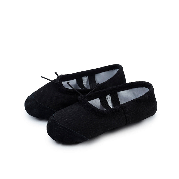 Балетки черные для танцев и занятий в школе, выполненные из прочного текстиля с мягкой носочной частью из натуральной кожи. Модель имеет эластичную резинку на заднике и шнурок для регулировки посадки, что обеспечивает комфорт и надежную фиксацию на ноге. Тонкая подошва из натуральной кожи позволяет чувствовать пол, а простой дизайн делает их универсальными для любого гардероба.