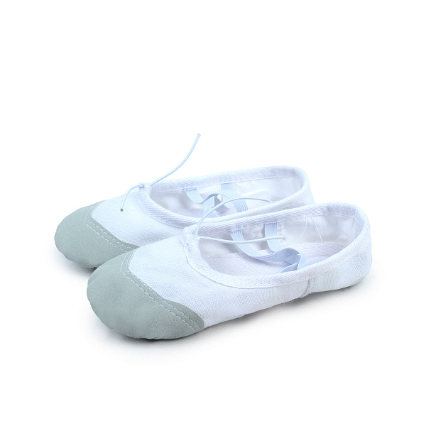 Балетки белые для танцев и занятий в школе, выполненные из прочного текстиля с мягкой носочной частью из натуральной кожи. Модель имеет эластичную резинку на заднике и шнурок для регулировки посадки, что обеспечивает комфорт и надежную фиксацию на ноге. Тонкая подошва из натуральной кожи позволяет чувствовать пол, а простой дизайн делает их универсальными для любого гардероба.