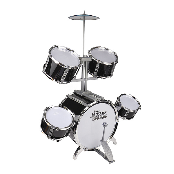 Детская барабанная установка Music Jazz Drum идеально подходит для юных музыкантов. Комплект включает в себя пять барабанов разного размера, тарелку, педаль, палочки и удобную табуретку.