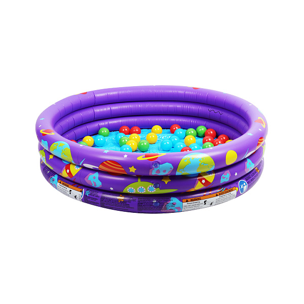 Надувной сухой бассейн с шарами – это развлекательная и одновременно развивающая игрушка для малышей. В комплекте надувной бассейн круглой формы, 50 разноцветных шаров и четыре открывающихся игровых мячей с сюрпризом внутри.