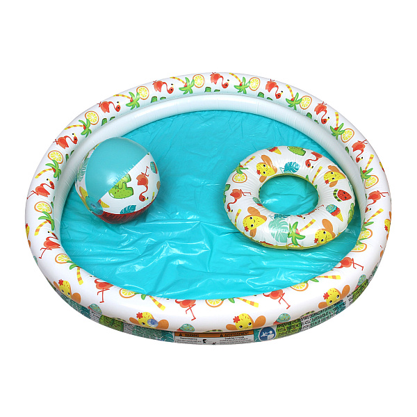 Бассейн и мяч предназначены для детей от 2 лет. Круг подходит детям от 3 до 6 лет.