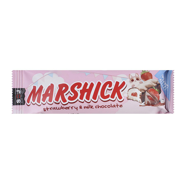 Батончик SOJ «Marshick» – это воздушный маршмеллоу и клубничная начинка, покрытые молочным шоколадом Легкость и нежность маршмеллоу дополняются сладким, освежающим вкусом клубники, а шоколад завершает композицию. Подходит для перекуса на прогулке или в школе.