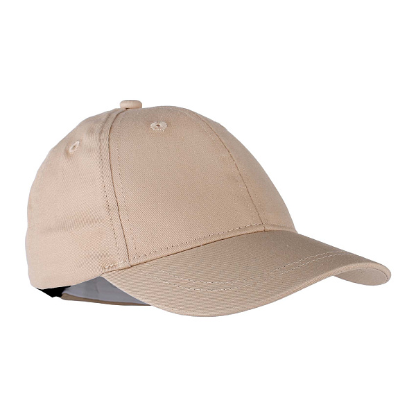 Регулируемый обхват позволяет адаптировать бейсболку под различные размеры головы, что делает ее удобной для длительного использования. Однотонная бежевая расцветка и минималистичный дизайн легко сочетаются с разной одеждой, дополняя любой стиль, будь то повседневный или спортивный. Такая бейсболка станет надежным спутником на прогулках и активных играх на свежем воздухе.