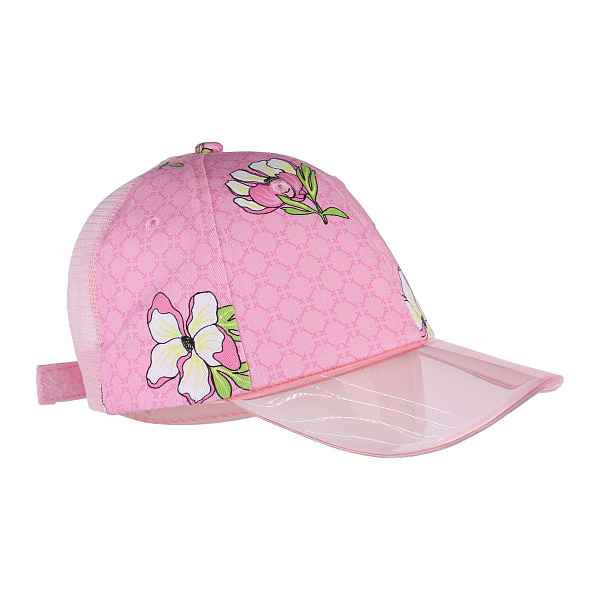 Бейсболка Lanson Kids принт цветы с прозрачным козырьком и сеткой розовая