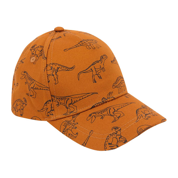 Стильная бейсболка займет достойное место в сезонном гардеробе юного модника. Головной убор привлекает внимание оригинальным цветом и классической формой. В качестве украшения использованы изображения динозавров, расположенные в хаотичном порядке. Любой мальчик будет в восторге от дизайна и комфортной посадки изделия.