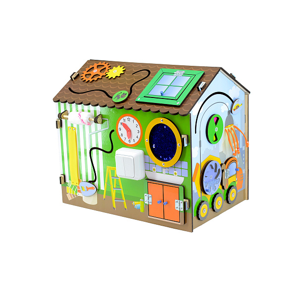 Объемную игрушку можно предложить в качестве обучающего развлечения мальчику старше 3 лет. Ребенка надолго займут манипуляции с подвижными деталями, имеющимися на стенках фанерного домика. В результате игровой деятельности активируется моторика рук, пространственное и логическое мышление, воображение, память и речь. Игрушка станет центром, вокруг которого можно придумать немало захватывающих сценариев.