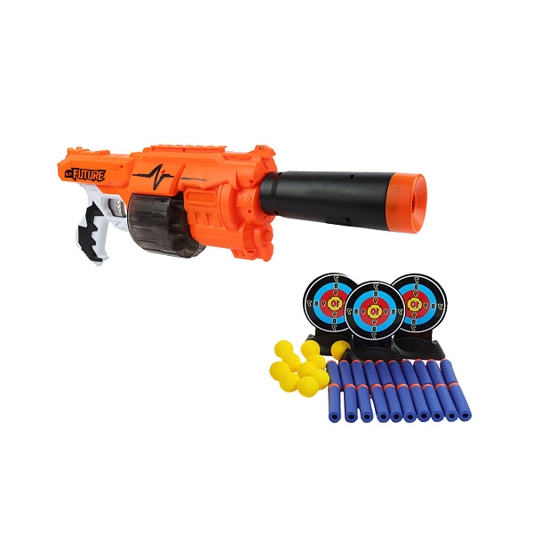 Автоматический бластер с мягкими пулями порадует любого ребенка старше 3 лет. В комплект входят шарики и мишени, позволяющие усложнить игру. Оружие с аккумуляторной батареей позволит устроить динамичное сражение, станет источником для массы позитивных эмоций.