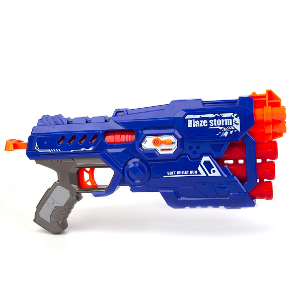C бластером Blaze Storm вас ждет мощный и зрелищный бой! Пистолет оснащен прицелом, подствольником, а также звуковыми эффектами для более реалистичных игр. Обойма автомата рассчитана на 10 патронов, а расстояние выстрела доходит до 10 метров. Все патроны выполнены из мягкого материала, безопасного для ребенка и окружающих людей во время игры. Пистолет идет в комплекте с 10 патронами, выполнен в стильном дизайне и работает от батареек.