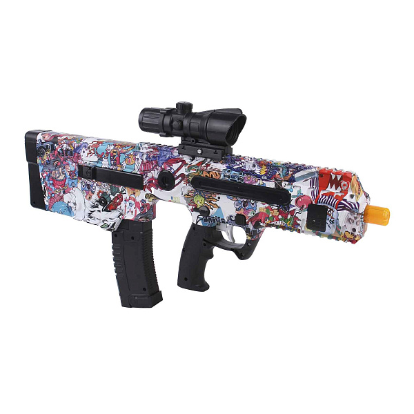 Бластер «Пулемет» с гелевыми пулями – это стильная и безопасная игрушка для активных игр. В комплект входит сам бластер с ярким графическим дизайном и прицелом, защитные очки и 5000 гелевых пуль диаметром 7-8 мм. Гелевые пули исключают риск травм.