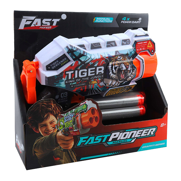Бластер ручной Fast Pioneer Tiger с мягкими пулями 4шт с 8лет
