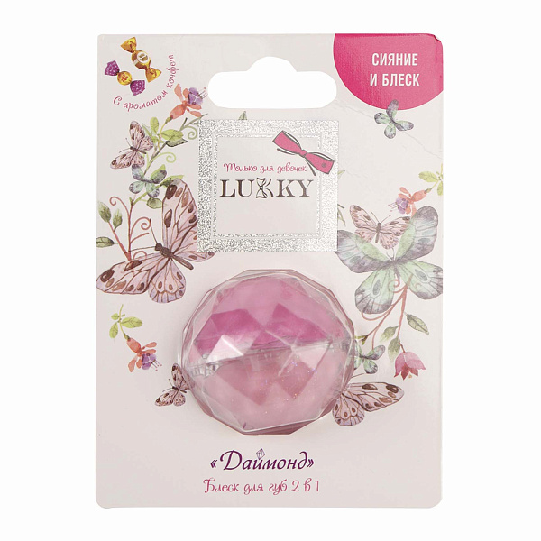 Блеск для губ «Даймонд» марки Lukky имеет 2 цветовых решения: насыщенную фуксию и розово-сиреневый оттенок, а также порадует ароматом конфет. Средство находится в стильном футляре с граненой поверхностью, напоминающей драгоценный камень. Внутри футляра содержится блеск на основе натурального пчелиного воска и масла ши, обеспечивающих увлажнение и питание губ.