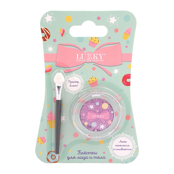 Блестки для лица и тела Lukky с аппликатором фиолетовые