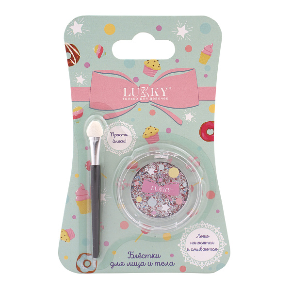 Блестки для лица и тела Lukky с аппликатором разноцветные с 5лет