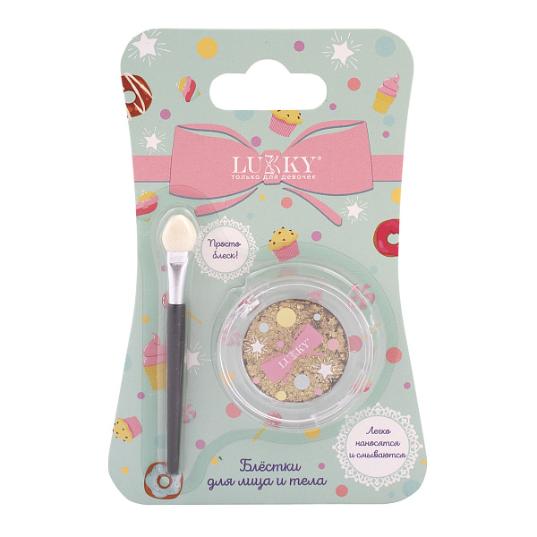 Блестки для лица и тела Lukky с аппликатором золотые с 5лет
