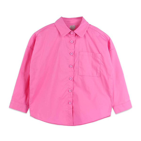 Классическая хлопковая блузка для девочек. Она выполнена в ярком розовом цвете. Имеет удобный свободный крой. Модель с длинным рукавом застегивается спереди на пуговицы. Аккуратный карман на правой стороне выполняет роль декоративного элемента. Несмотря на, казалось бы, строгий дизайн, кофту можно носить и как повседневную блузу. В сочетании с топом, шортами или легкими брюками получится модный и современный наряд.