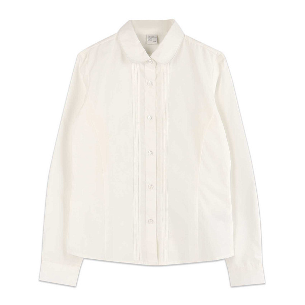 Сдержанная блузка для девочки нежного молочного цвета — отличное решение на каждый день для девочки-школьницы. Блузка застегивается на пуговицы, вдоль которых — декор в виде аккуратных складок.