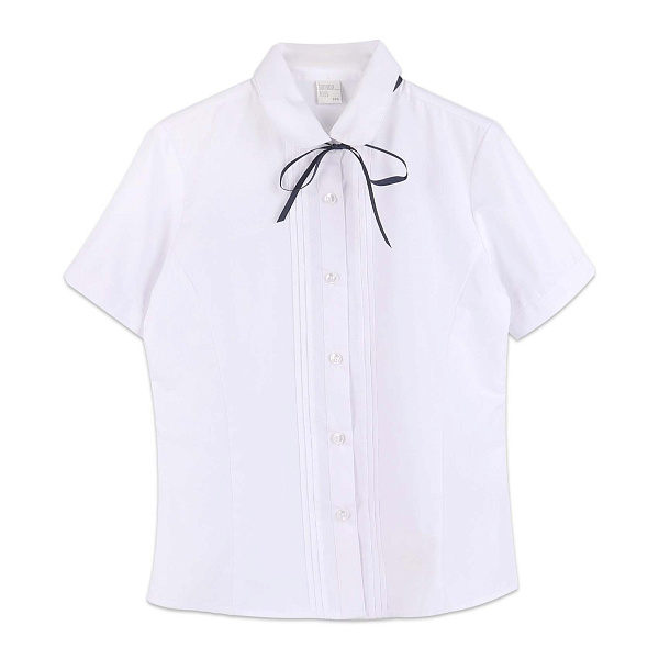 Блузка для девочки — стильный и практичный элемент школьного гардероба. Белый цвет делает блузку универсальной и подходящей как для ежедневного ношения, так и для школьных праздников. Закругленный воротничок с синим бантом создают элегантный вид. Центральная часть украшена вертикальными складками. Благодаря короткому рукаву блузка подойдет для теплого времени года и как нижний слой под кардиган или жилет в холодный сезон.