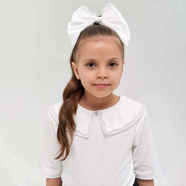 Эта нарядная трикотажная блузка для девочек сочетает удобство и изящество, идеально подходя для различных мероприятий и повседневной носки. Изготовленная из хлопка и эластана, она дарит мягкость и свободу движений.