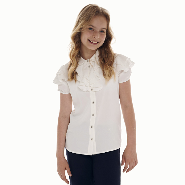 Представляем вам прекрасную белую школьную блузку для девочек с короткими рукавами, которая станет отличным выбором для повседневной носки в школу. Эта блузка выполнена из высококачественного материала, который обеспечивает комфорт при носке и приятный на ощупь.