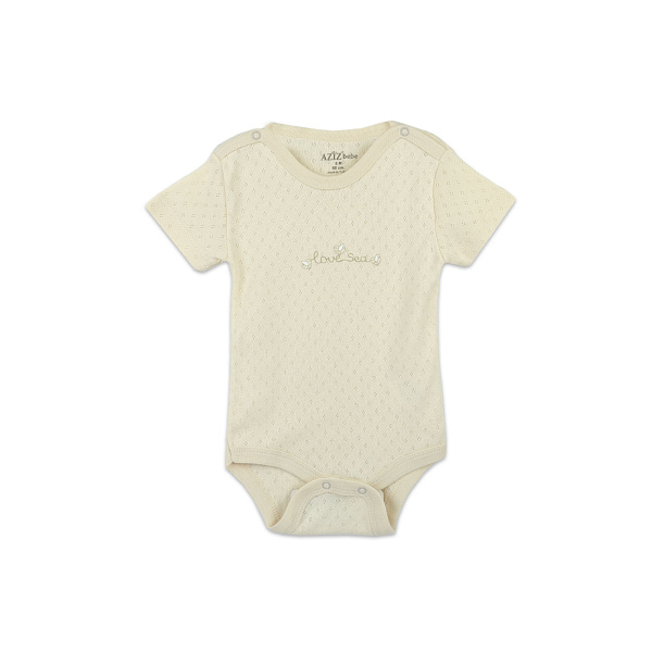 Порадуйте малыша не только комфортом, но и милым уютным бежевым дизайном с помощью мягкого трикотажного боди бренда AZIZ bebe. Ткань из натурального хлопка хорошо пропускает воздух, обеспечивая сухость и тепло во время носки. Рукава изделия короткие и не сковывают движения маленьких ручек. Вырез горловины круглый, по бокам дополнен застежками для облегчения переодевания. Между ножек имеется застежка в виде кнопок, с их помощью легко переодеть малыша и сменить подгузник. Завершает минималистичный дизайн боди аккуратная надпись «Люблю море». Рекомендовано для детей ясельного возраста.