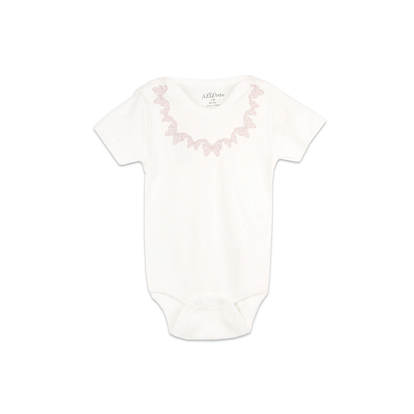 Уютный боди белого цвета порадует каждую маленькую принцессу. В основе мягкой и приятной на ощупь ткани использован натуральный хлопок, который хорошо пропускает воздух, но при этом сохраняет тепло. Низ боди обработан каймой в тон к изделию, а застежки-кнопки между ножек позволят легко сменить подгузник. Рукава изделия короткие, горловина круглая без воротника, дополнена застежками-кнопками. Нежный девичий дизайн с розовыми бабочками понравится малышке. Рекомендовано для етей ясельного возраста.
