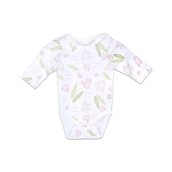 Боди представляет собой совмещенную кофточку с удлиненными рукавами и трусики. Застежки на металлических кнопочках позволяют быстро и удобно менять памперсы, а также переодевать малыша. Швы выполнены наружу, поэтому они не натирают нежную детскую кожу. Мягкий и комфортный материал изделия позволяет носить его ежедневно, даря малышу тепло и уют.